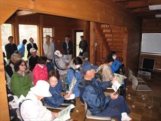多目的研修棟へ入り,森林公園ガイドマップ の説明を聞きます。 |