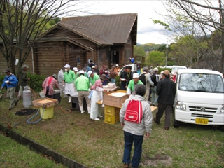 4月21日 午前7時半すぎから 綾歌森林公園多目的研修棟横の駐車場に 参加者が集まりはじめました。 参加者は約50名 |